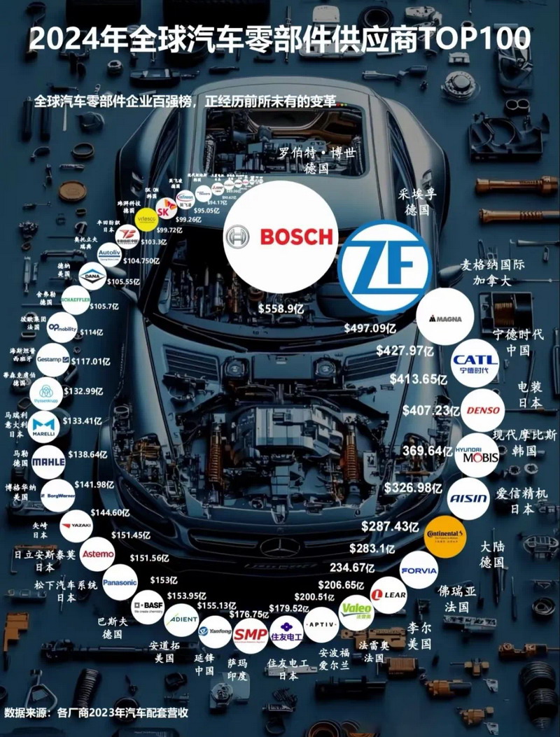 全球汽车零部件供应商百强:中国这15家入榜! 据《美国汽车新闻》(Automotive News)此前发布的“2024年度全球汽车零部件供应商百强榜”,编...